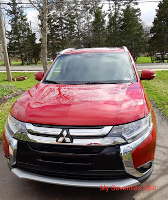We picked up our Mitsubishi Outlander late in the afternoon & at the dealership chuckled at the sign hanging on the mirror...