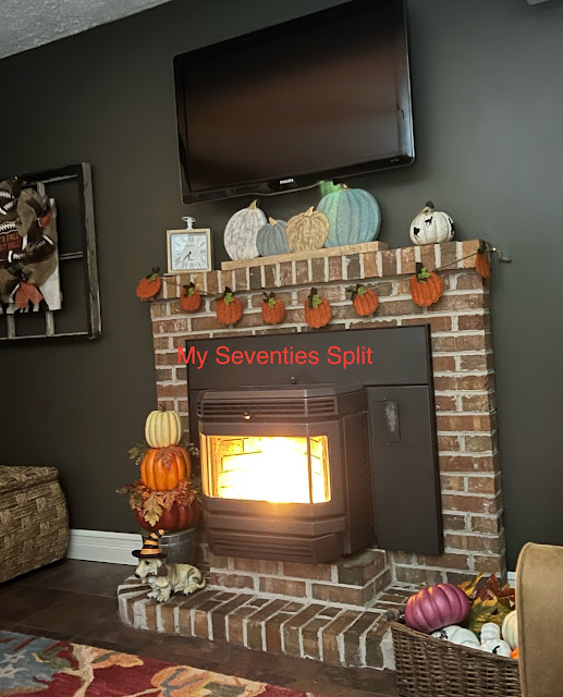 We have an abundance of potatoes and corn on the cob in the garden still...along with buttercup squash and onions. Mr. Seventies bundled up some corn stalks & set out as a display at the front door...today we have a trip planned to a local pumpkin patch with grand baby & family....then for Sunday dinner afterwards.