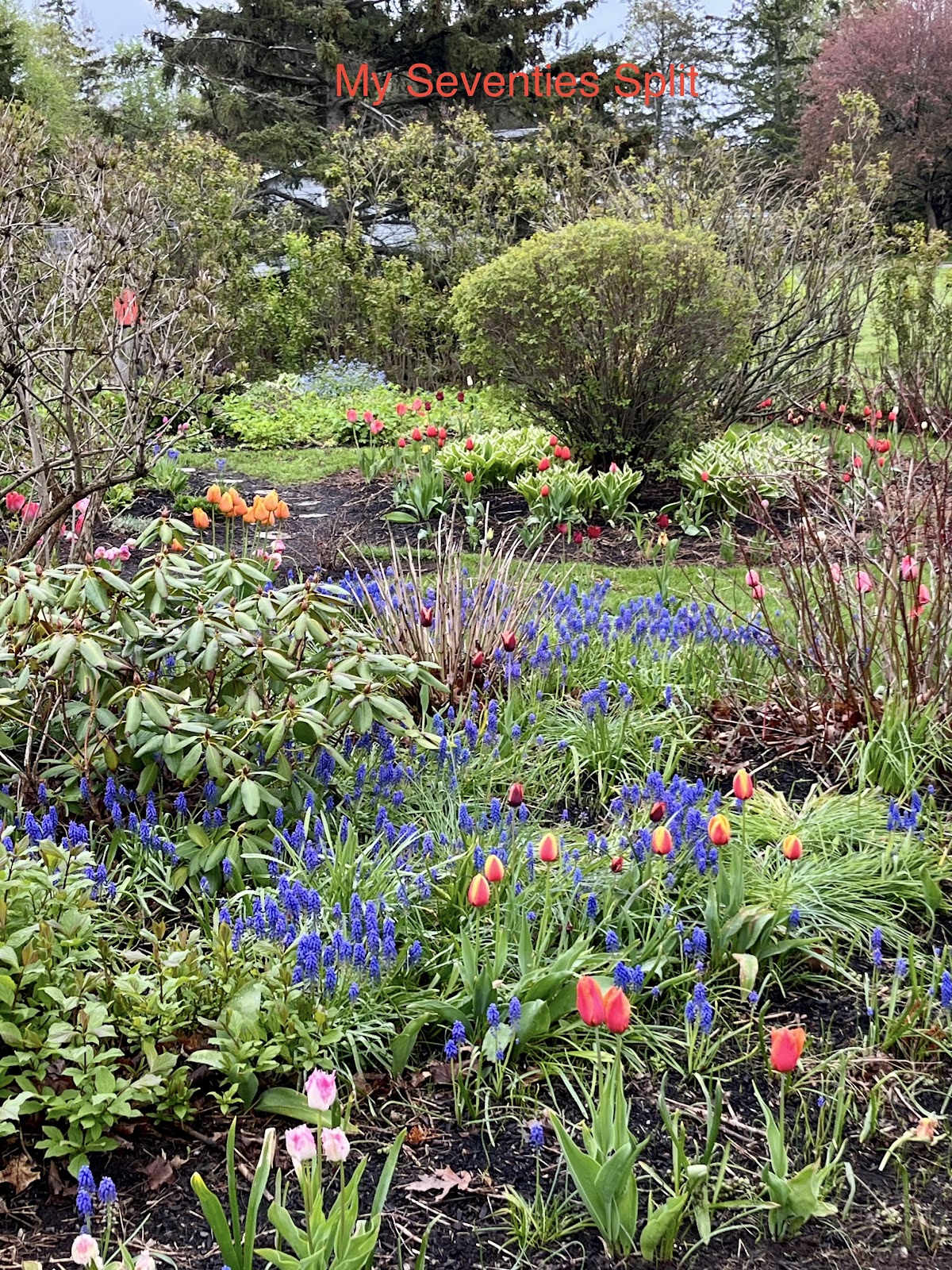 Can you believe it's the last of May already? The weather has been amazing the past few days....warm & windy! Mr. Seventies had four loads of mulch delivered for the front gardens.....and has it spread. Gardens are looking lovely & fresh. It will take another four loads to top off the rest of the flower beds...